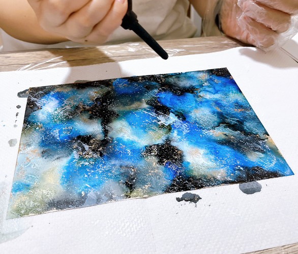 色の美しさや重なりに癒されながら、一人ひとり異なる唯一無二の表現が楽しめる、アルコールインクアートやテクスチャーアート。